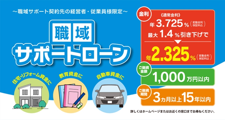 住宅ローンやカーローンなど、ライフプランに合わせたサービスを取り揃えております。